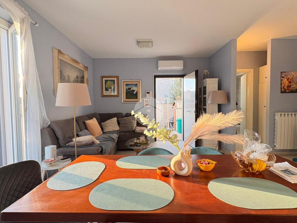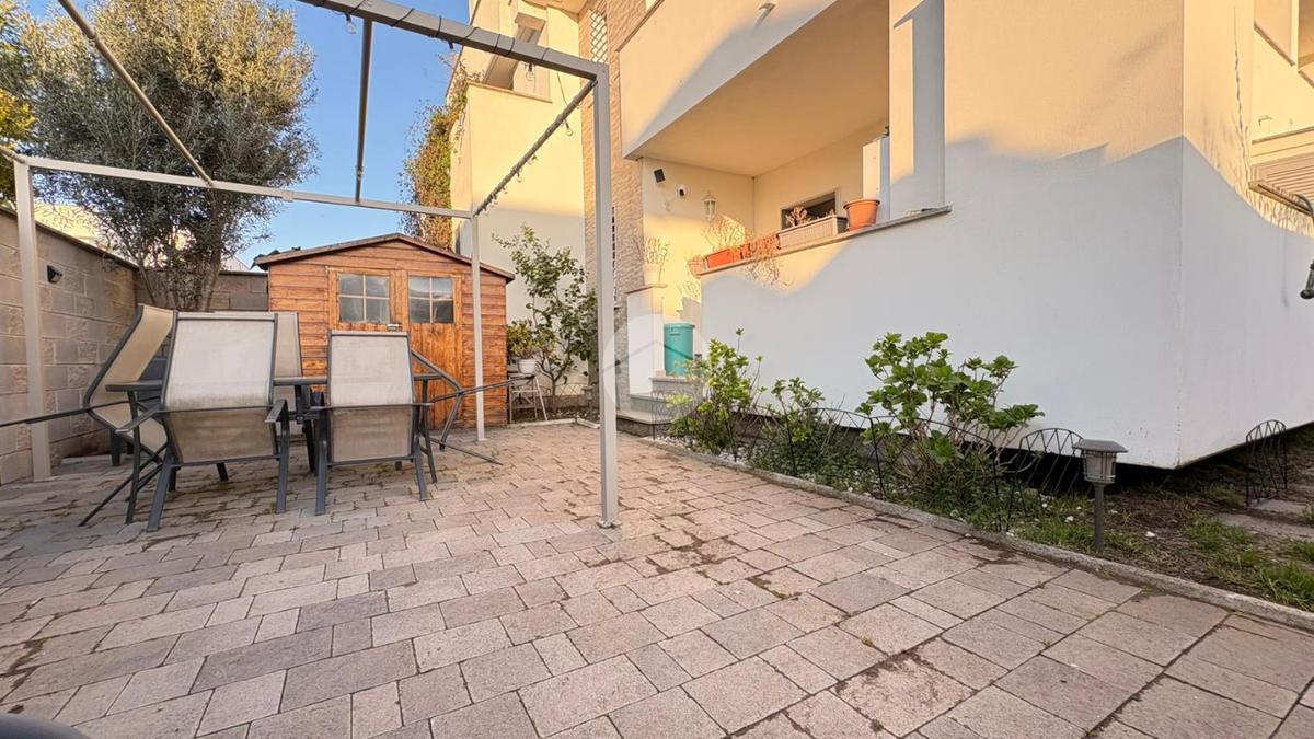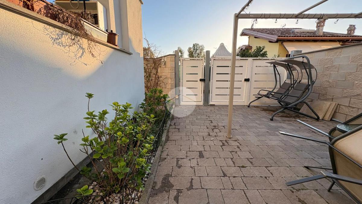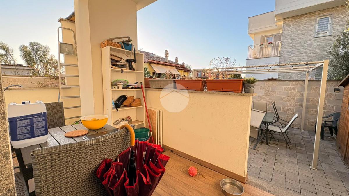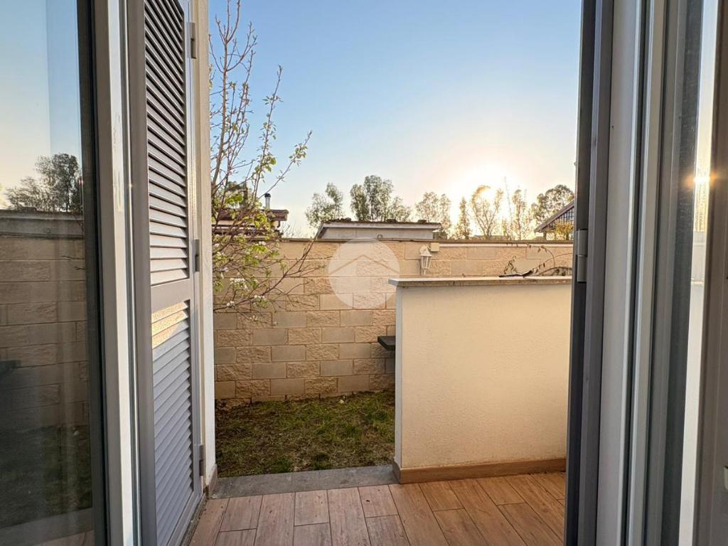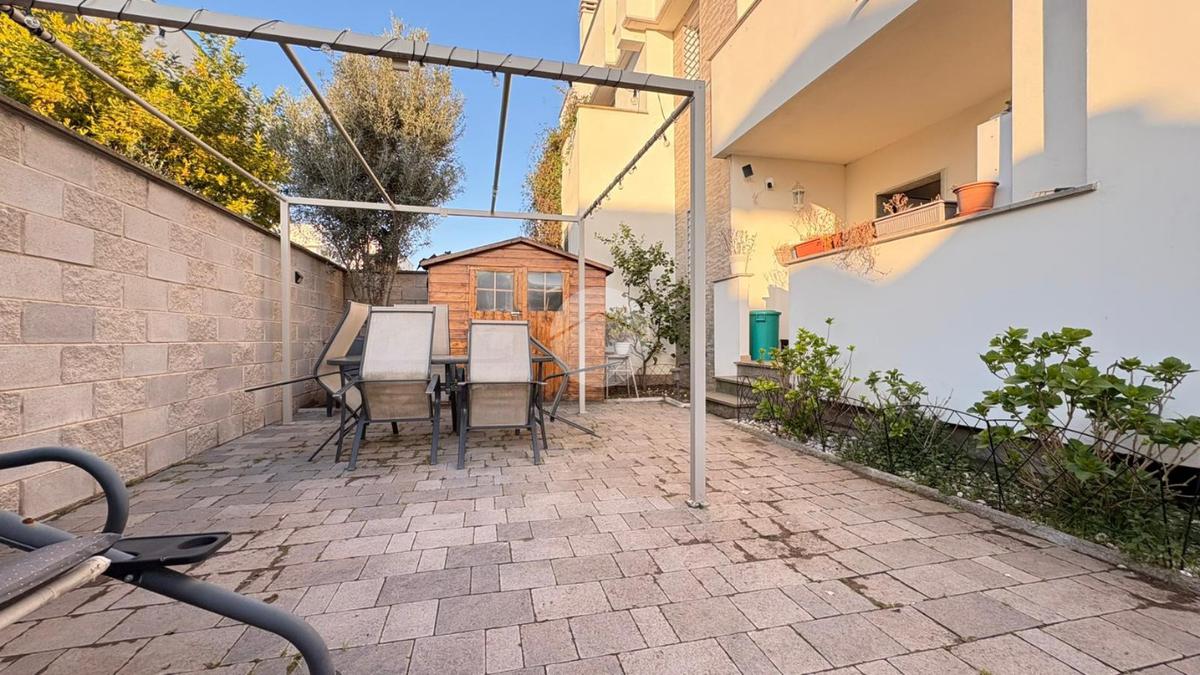 Piana del Sole. L’appartamento si sviluppa su due livelli fuori terra ed è valorizzato da un ampio giardino angolare, in parte mattonato e in parte a verde, arricchito da un comodo patio angolare al piano terra, ideale per pranzi all’aperto e momenti di relax. La proprietà dispone inoltre di accesso carrabile che consente di parcheggiare comodamente un’auto all’interno del giardino. Il piano terra ospita la zona giorno composta da un luminoso soggiorno con angolo cottura a vista e un bagno finestrato. La zona notte si sviluppa al piano superiore ed è composta da una camera matrimoniale con accesso al balcone, un locale stenditoio attualmente adibito a seconda camera e un wc finestrato con doccia. Completa la proprietà un lastrico solare di proprietà esclusiva, che rappresenta un ulteriore spazio esterno sfruttabile. L’immobile è dotato di pannelli solari per la produzione di acqua calda sanitaria e presenta una classe energetica A, caratteristiche che garantiscono efficienza energetica e contenimento dei consumi. La disposizione degli ambienti rende la soluzione funzionale e ben organizzata, ideale per chi desidera una casa con ampi spazi esterni e la comodità del posto auto interno. Ulteriore punto di forza è l’assenza di spese condominiali e di consorzio. La posizione risulta strategica, a pochi minuti dal Centro Commerciale Da Vinci e dall’Aeroporto di Roma Fiumicino, con facile accesso ai principali collegamenti della zona.