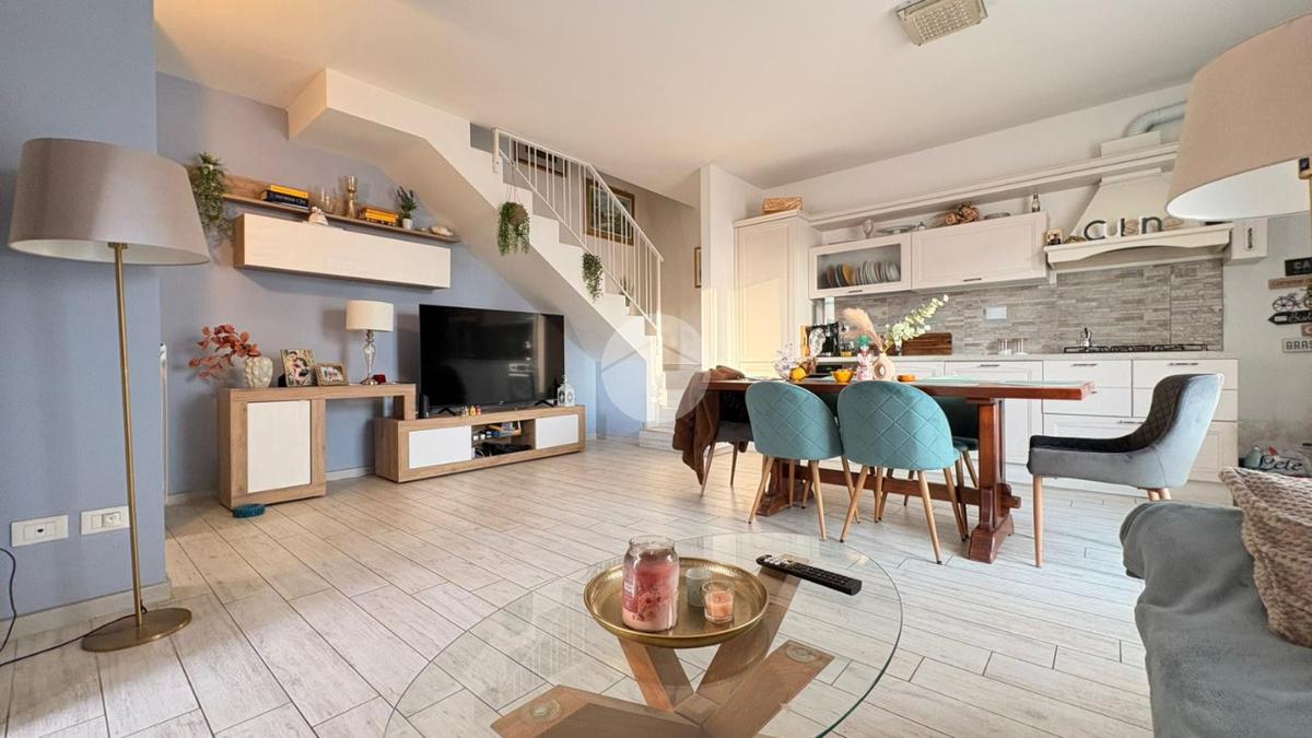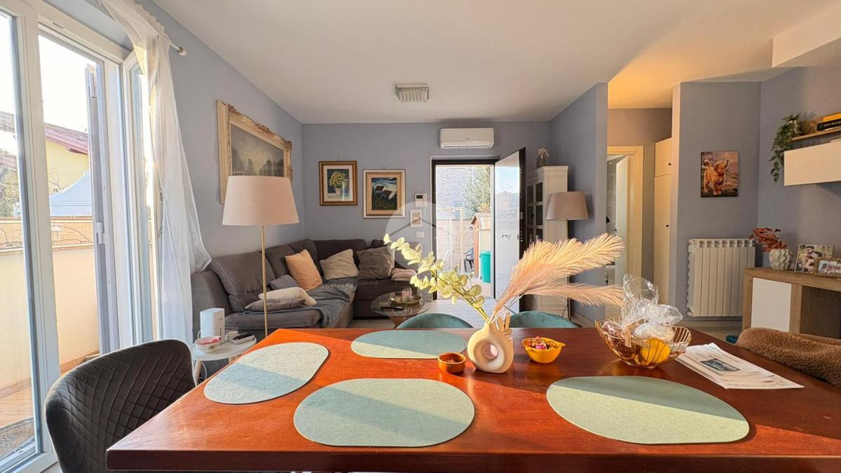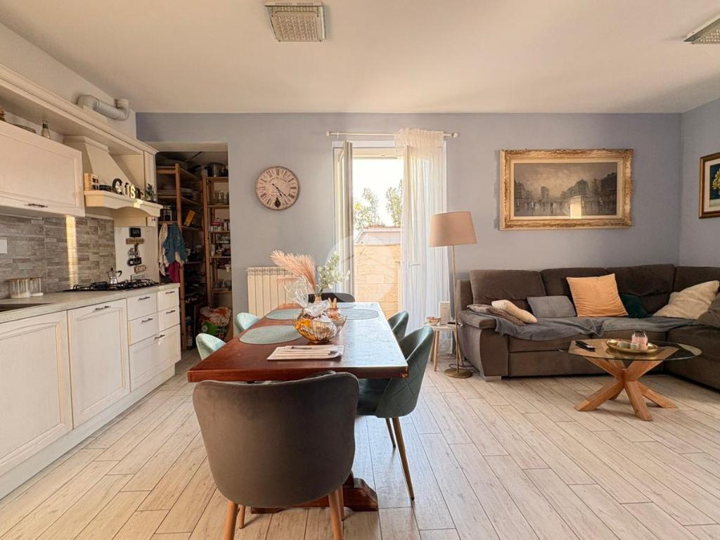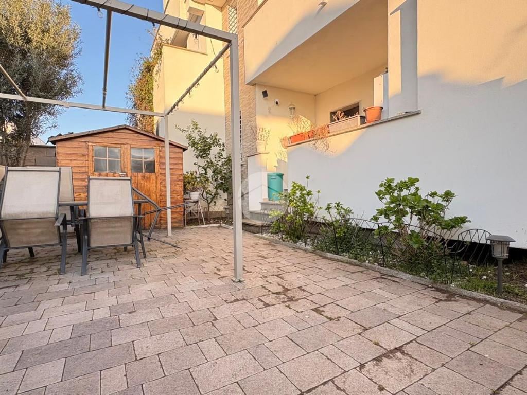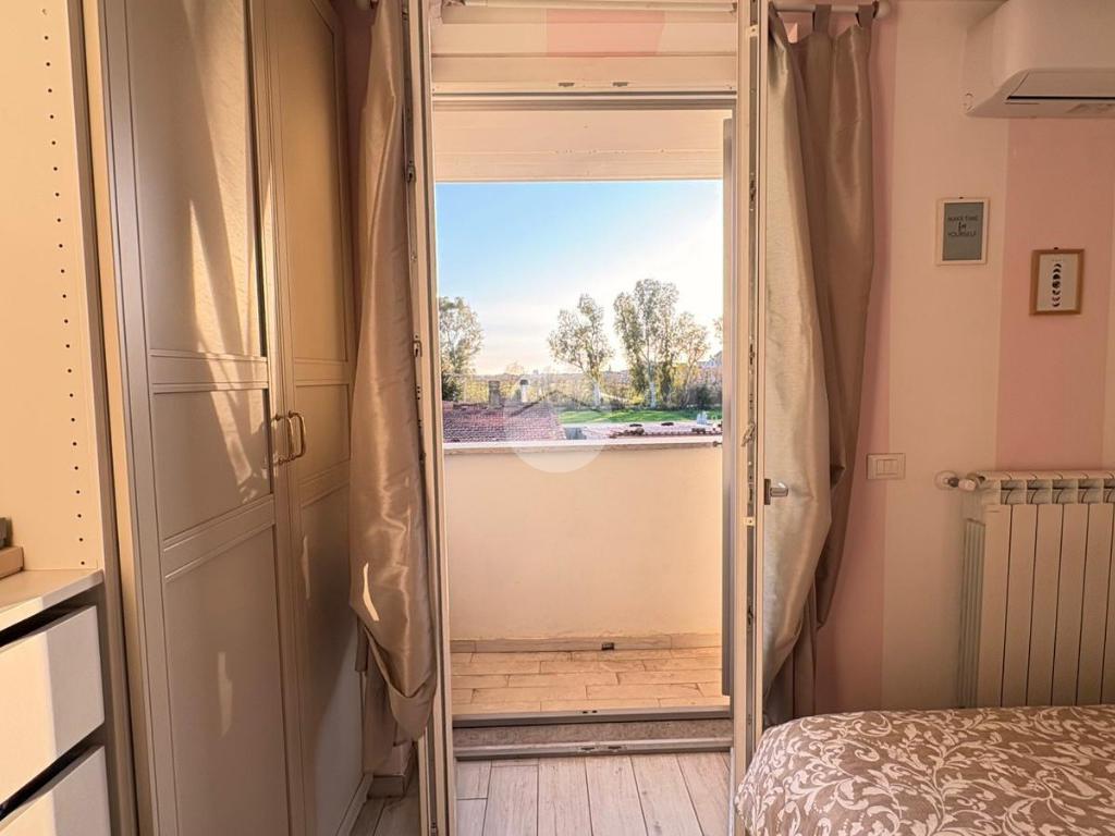 Piana del Sole. L’appartamento si sviluppa su due livelli fuori terra ed è valorizzato da un ampio giardino angolare, in parte mattonato e in parte a verde, arricchito da un comodo patio angolare al piano terra, ideale per pranzi all’aperto e momenti di relax. La proprietà dispone inoltre di accesso carrabile che consente di parcheggiare comodamente un’auto all’interno del giardino. Il piano terra ospita la zona giorno composta da un luminoso soggiorno con angolo cottura a vista e un bagno finestrato. La zona notte si sviluppa al piano superiore ed è composta da una camera matrimoniale con accesso al balcone, un locale stenditoio attualmente adibito a seconda camera e un wc finestrato con doccia. Completa la proprietà un lastrico solare di proprietà esclusiva, che rappresenta un ulteriore spazio esterno sfruttabile. L’immobile è dotato di pannelli solari per la produzione di acqua calda sanitaria e presenta una classe energetica A, caratteristiche che garantiscono efficienza energetica e contenimento dei consumi. La disposizione degli ambienti rende la soluzione funzionale e ben organizzata, ideale per chi desidera una casa con ampi spazi esterni e la comodità del posto auto interno. Ulteriore punto di forza è l’assenza di spese condominiali e di consorzio. La posizione risulta strategica, a pochi minuti dal Centro Commerciale Da Vinci e dall’Aeroporto di Roma Fiumicino, con facile accesso ai principali collegamenti della zona.