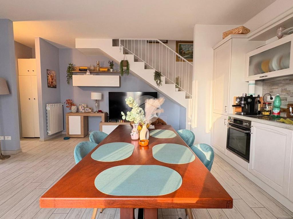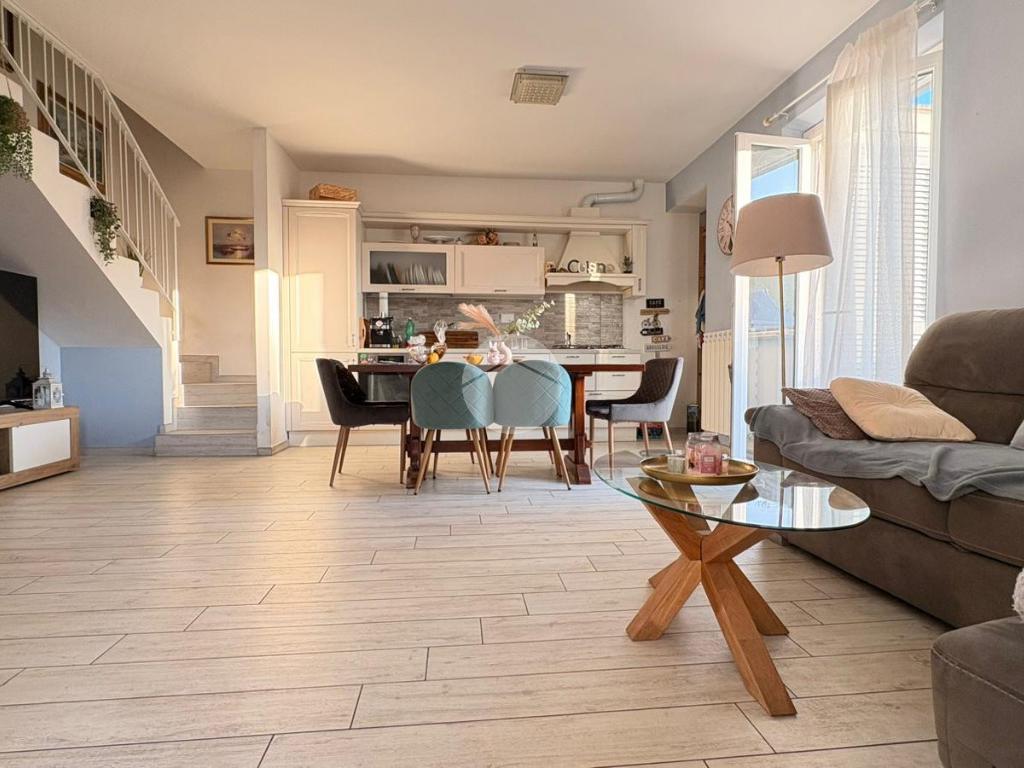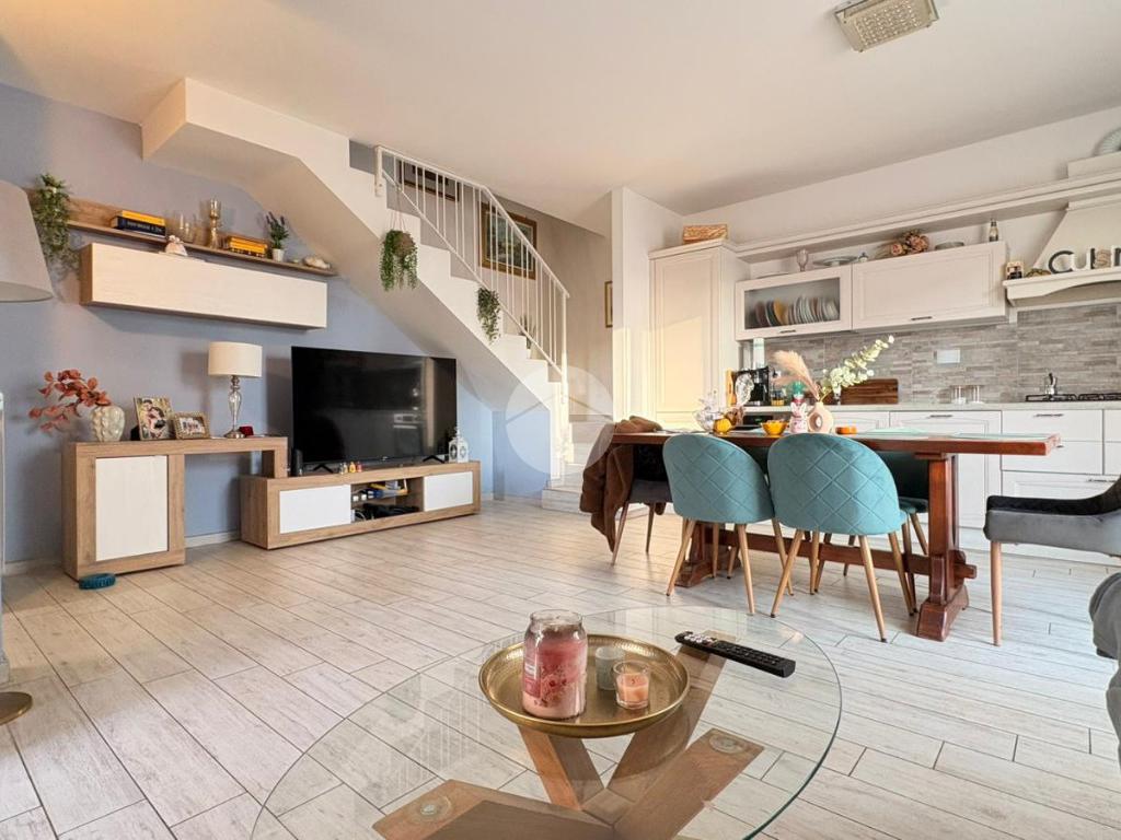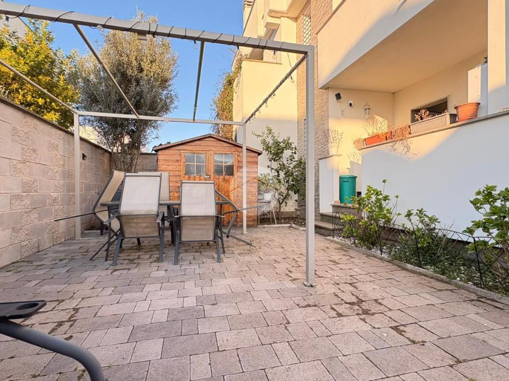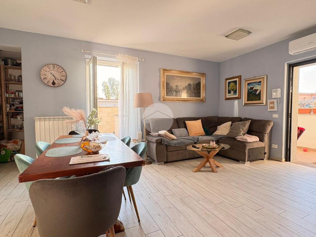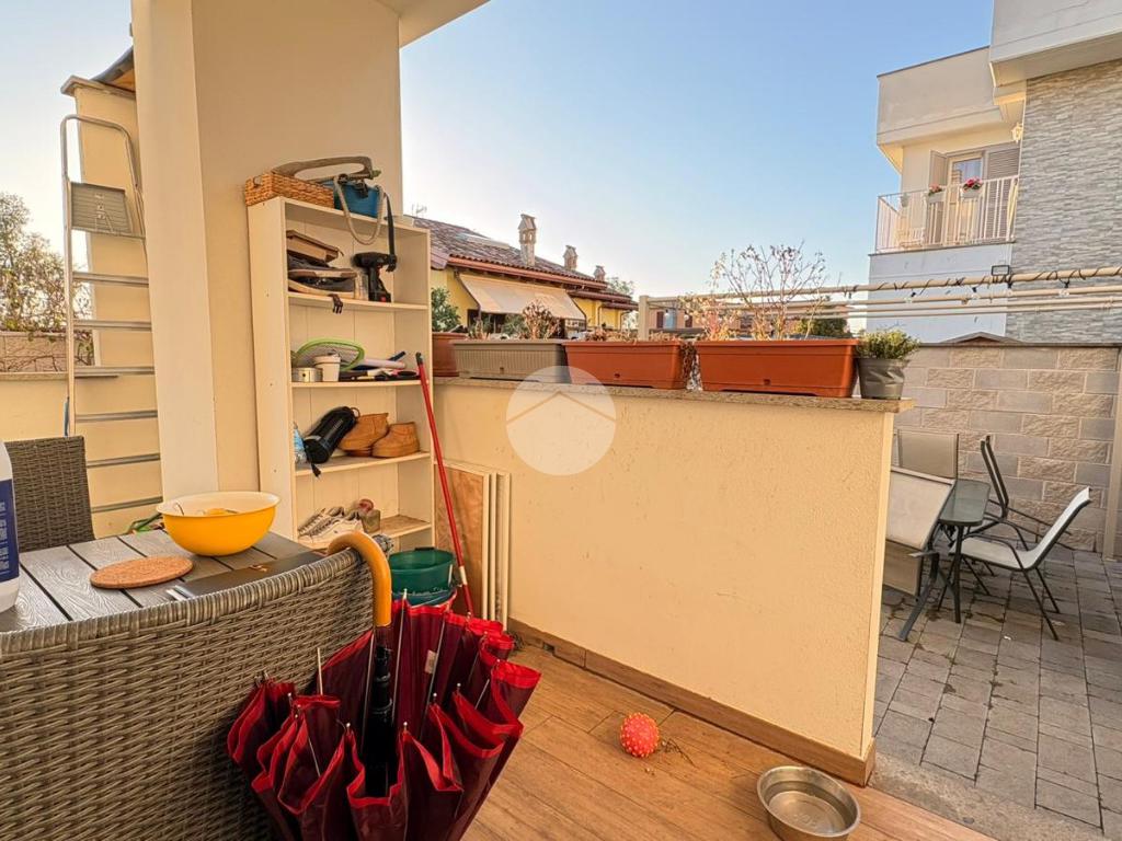 Piana del Sole. L’appartamento si sviluppa su due livelli fuori terra ed è valorizzato da un ampio giardino angolare, in parte mattonato e in parte a verde, arricchito da un comodo patio angolare al piano terra, ideale per pranzi all’aperto e momenti di relax. La proprietà dispone inoltre di accesso carrabile che consente di parcheggiare comodamente un’auto all’interno del giardino. Il piano terra ospita la zona giorno composta da un luminoso soggiorno con angolo cottura a vista e un bagno finestrato. La zona notte si sviluppa al piano superiore ed è composta da una camera matrimoniale con accesso al balcone, un locale stenditoio attualmente adibito a seconda camera e un wc finestrato con doccia. Completa la proprietà un lastrico solare di proprietà esclusiva, che rappresenta un ulteriore spazio esterno sfruttabile. L’immobile è dotato di pannelli solari per la produzione di acqua calda sanitaria e presenta una classe energetica A, caratteristiche che garantiscono efficienza energetica e contenimento dei consumi. La disposizione degli ambienti rende la soluzione funzionale e ben organizzata, ideale per chi desidera una casa con ampi spazi esterni e la comodità del posto auto interno. Ulteriore punto di forza è l’assenza di spese condominiali e di consorzio. La posizione risulta strategica, a pochi minuti dal Centro Commerciale Da Vinci e dall’Aeroporto di Roma Fiumicino, con facile accesso ai principali collegamenti della zona.
